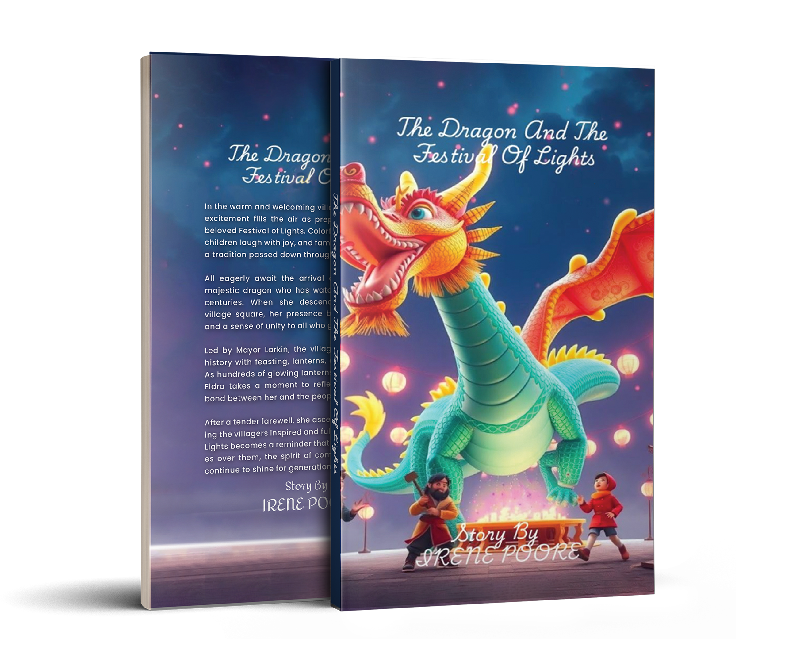 The Dragon and the Festival of Lights invites readers into the charming village of Elderglow, where the beloved Festival of Lights fills the streets with joy, color, and tradition. When Eldra, the wise dragon guardian, arrives, she brings wonder, comfort, and a sense of unity. A heartwarming story of community, celebration, and the enduring magic of friendship that will captivate readers of all ages.